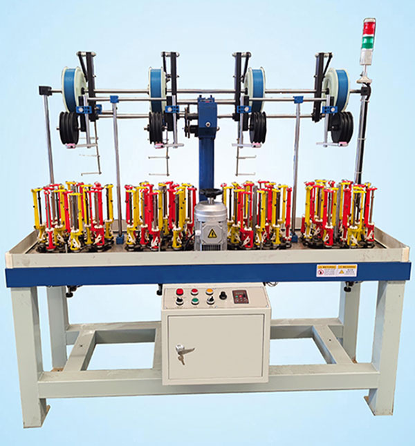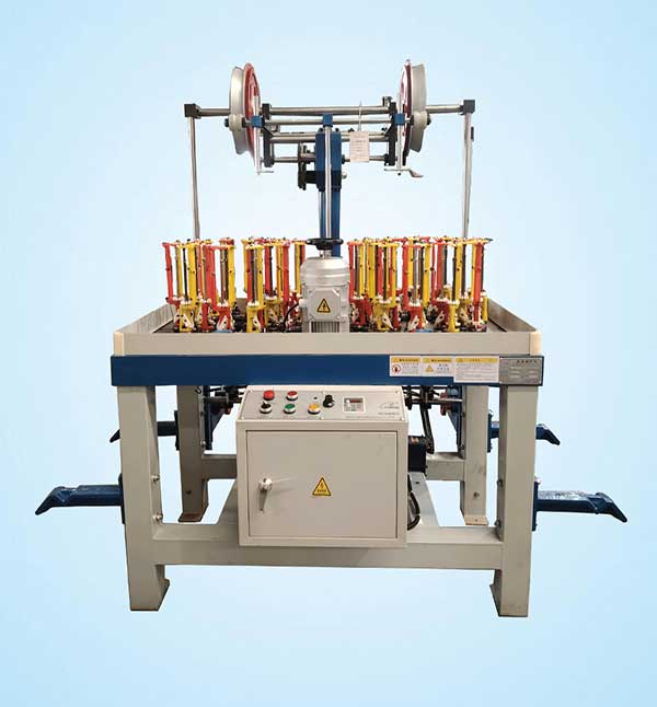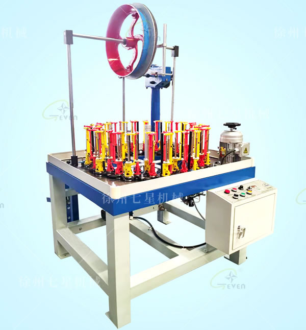 用途:織帶(鞋帶、服飾帶、松緊帶、波浪帶、滾邊帶、肩條帶等),測(cè)量繩、手提繩、拖車(chē)?yán)K、工具用繩,高空作業(yè)繩等各種繩帶的編織機(jī)。