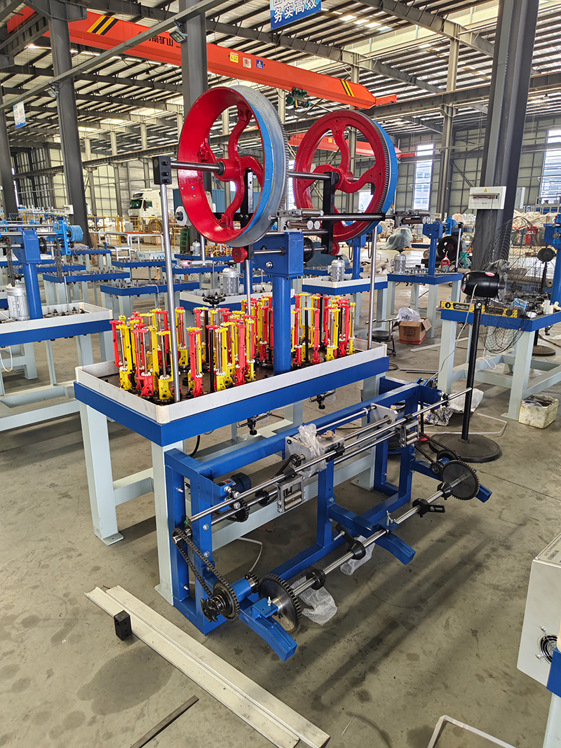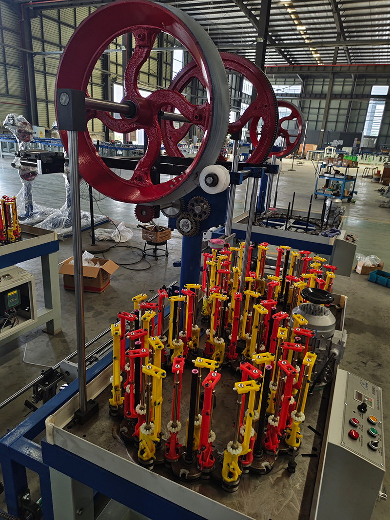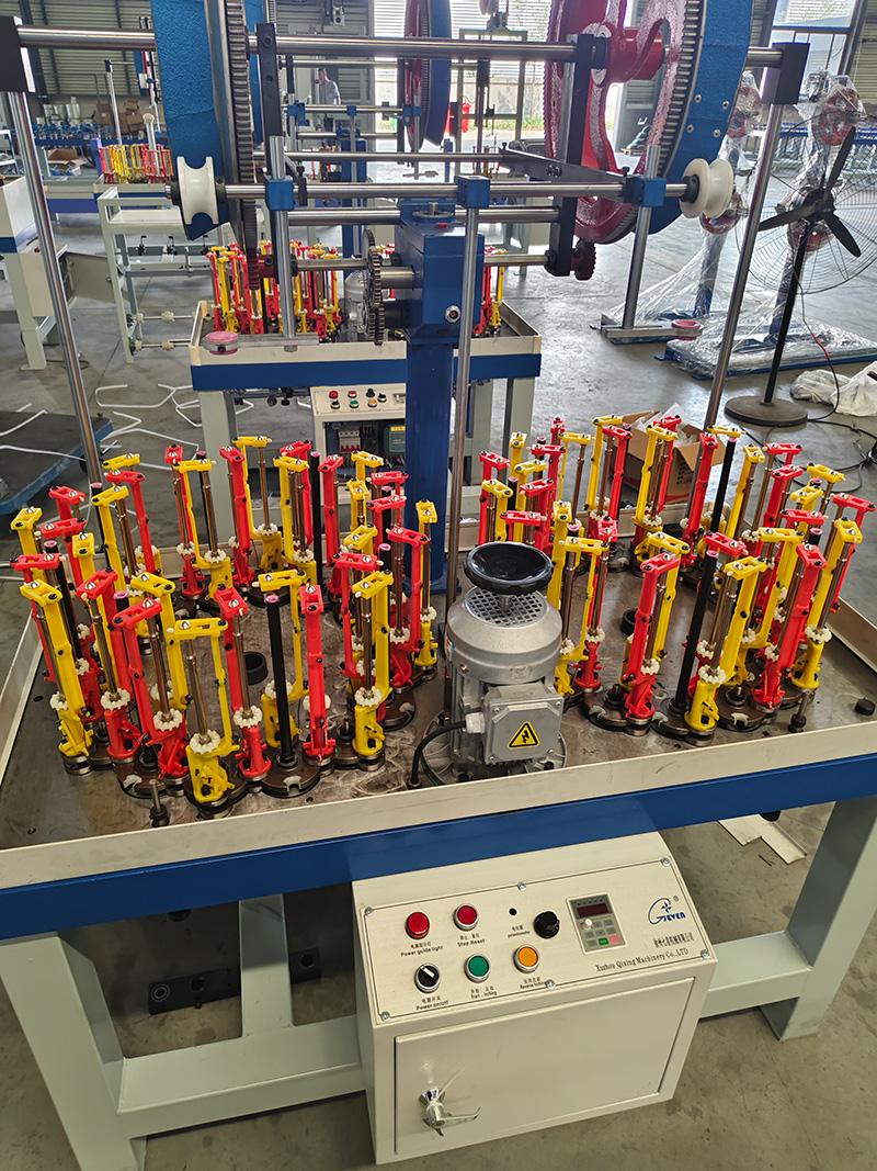 1.編織通氣繩,斜滾筒牽引,帶收排線架,帶自制線盤,按臺數配。2、32錠編織12mm;  3、芯線傘桿用粗桿,大夾線器,帶斷芯線自停裝置。4、中心芯管,380V,三相,益電通,90錠子0.9簧,紗管47*142,可現場安裝調試。